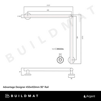 Argent Advantage Designer 450x450mm 90 degree Rail Brushed Nickel