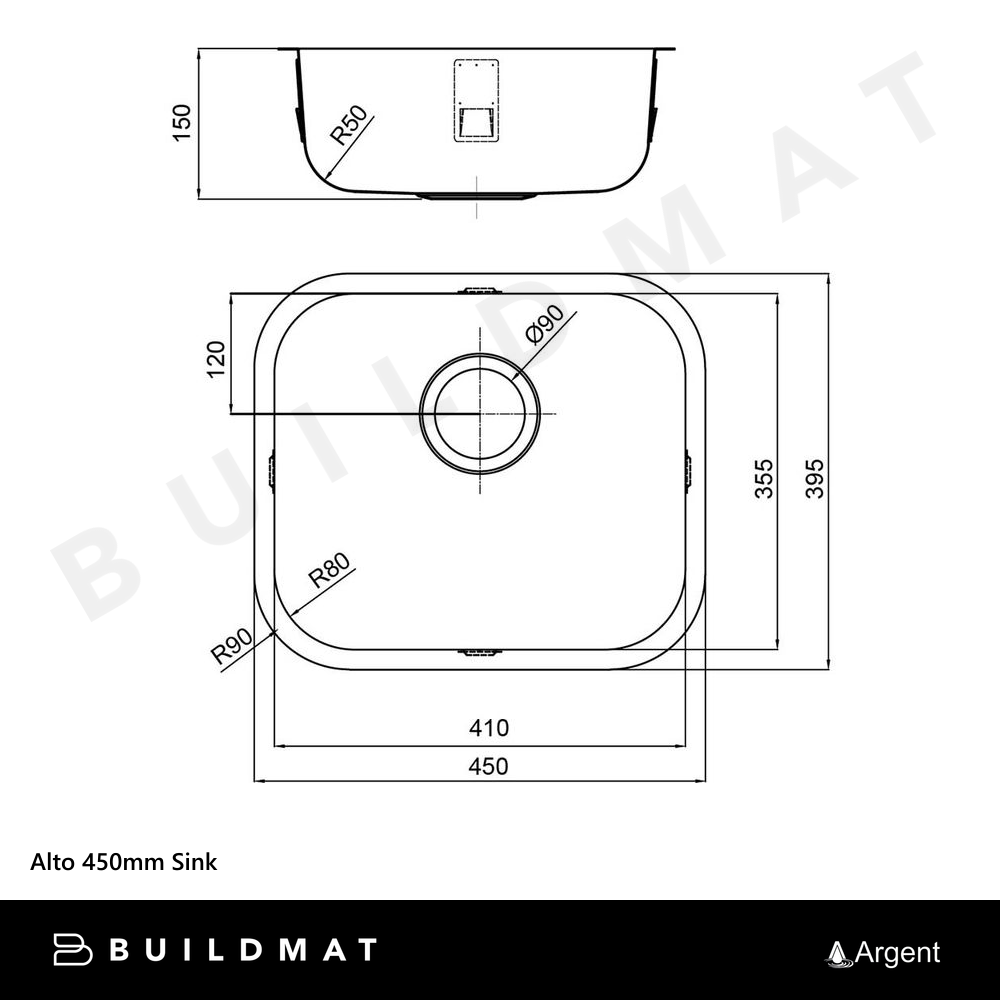 Argent Alto 450mm Sink Stainless Steel