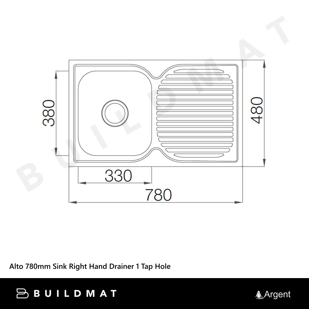 Argent Alto 780mm Sink with Right Hand Drainboard 1 Tap Hole Stainless Steel