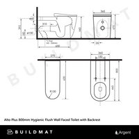 Argent Alto Plus 800mm Hygienic Flush Wall Faced Toilet Pan with Seat and Backrest White