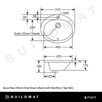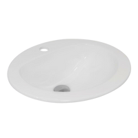 Argent Azure Neu 510mm Oval Drop In Basin with Overflow 1 Tap Hole Gloss White