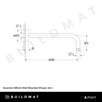 Argent Essential 300mm Wall Mounted Shower Arm Brushed Gold