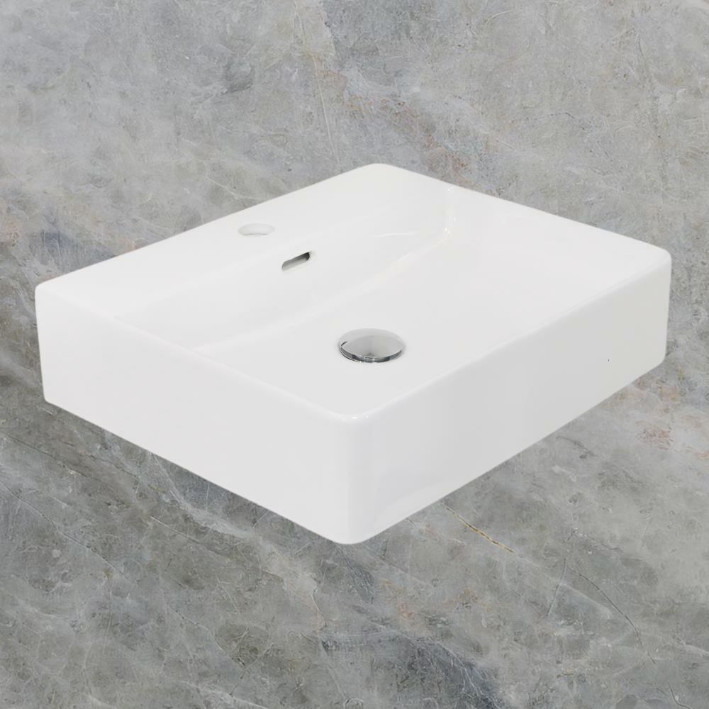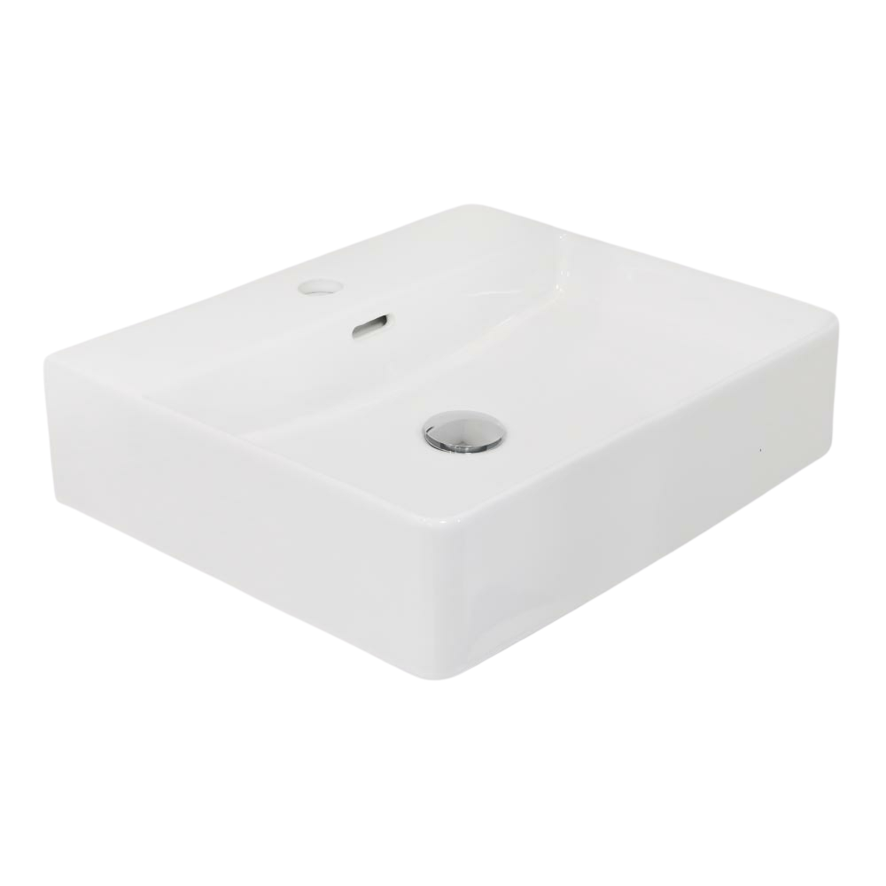 Argent Evo Neu 500mm Rectangular Counter Top or Wall Hung Basin with Overflow 1 Tap Hole Gloss White