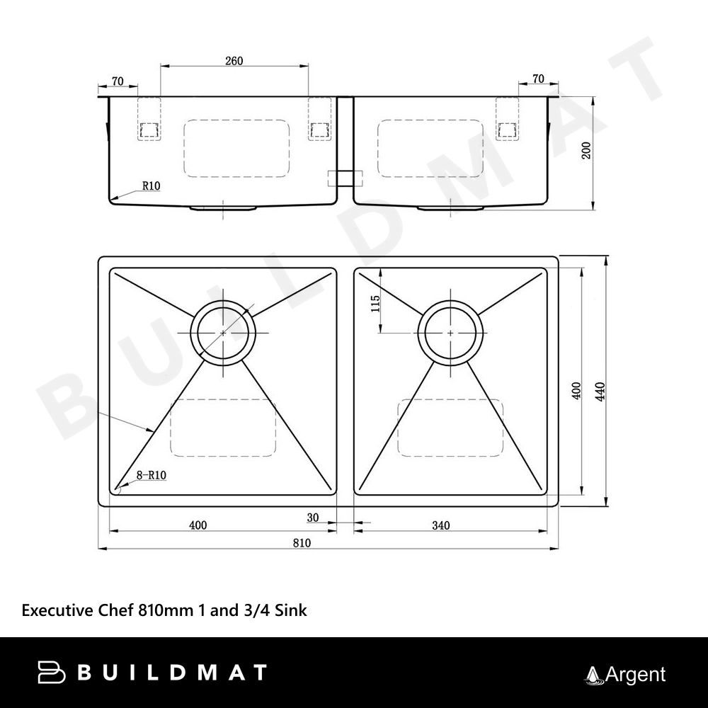 Argent Executive Chef 810mm 1 and 3/4 Sink Stainless Steel