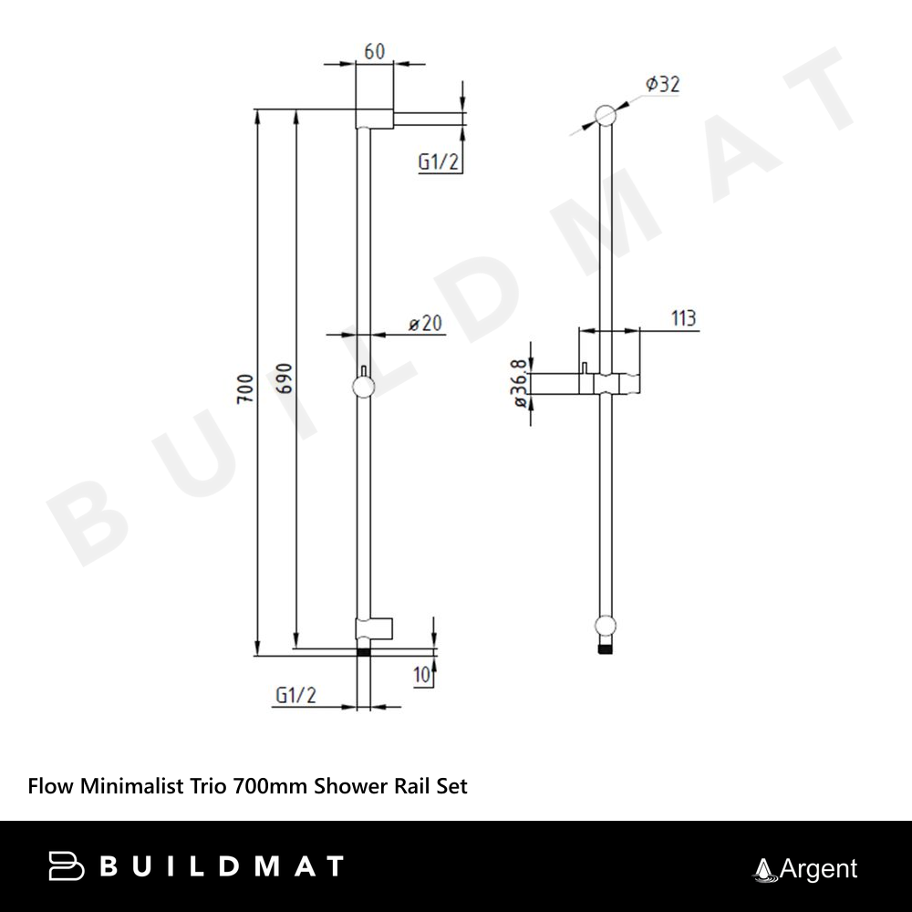 Argent Flow Minimalist Trio 700mm Shower Rail Set Chrome