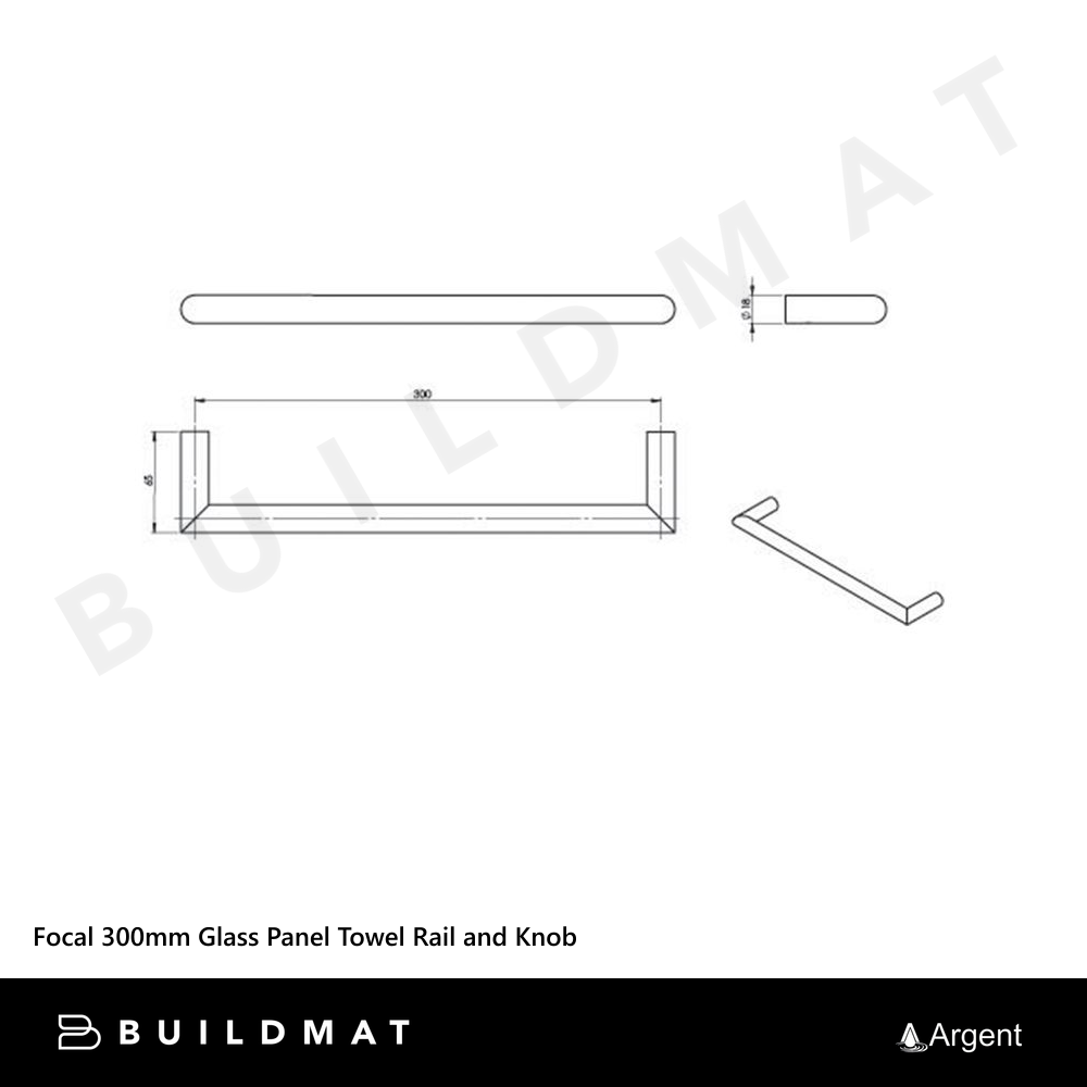 Argent Focal 300mm Glass Panel Towel Rail and Knob Chrome