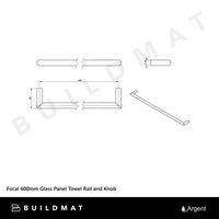 Argent Focal 600mm Glass Panel Towel Rail and Knob Chrome