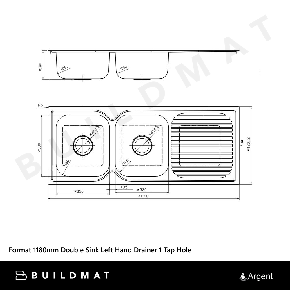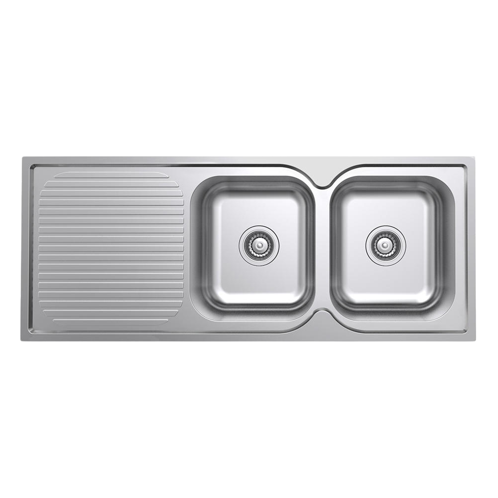 Argent Format 1180mm Double Sink with Left Hand Drainboard 1 Tap Hole Stainless Steel