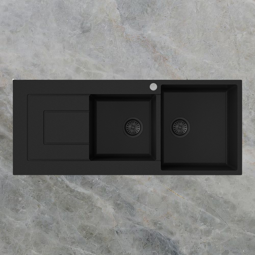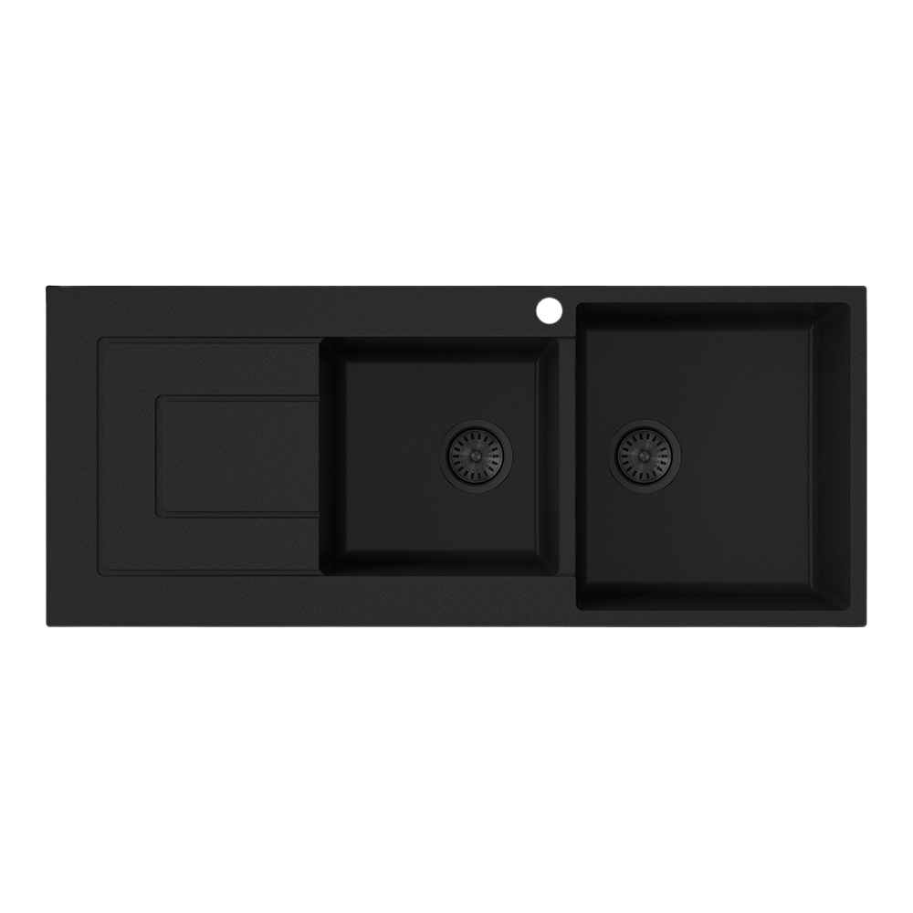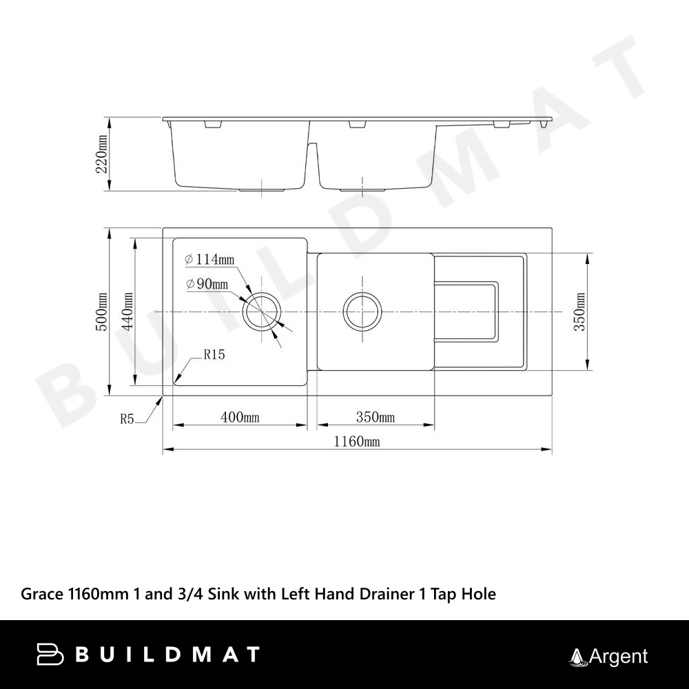 Argent Grace 1160mm 1 and 3/4 Granite Sink with Left Hand Drainboard 1 Tap Hole Matte Black