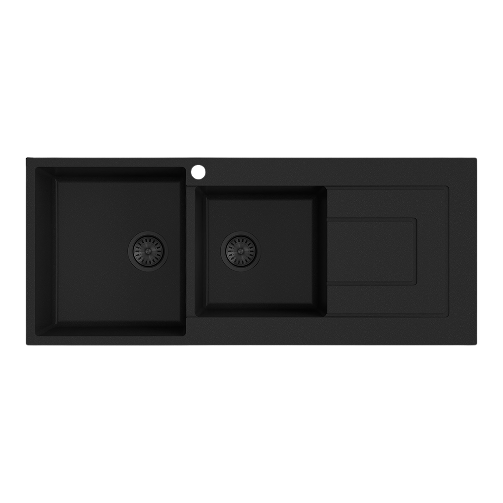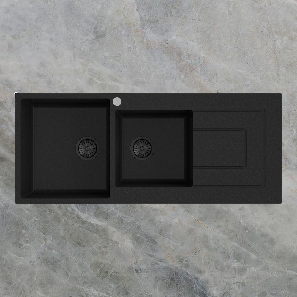 Argent Grace 1160mm 1 and 3/4 Granite Sink with Right Hand Drainboard 1 Tap Hole Matte Black