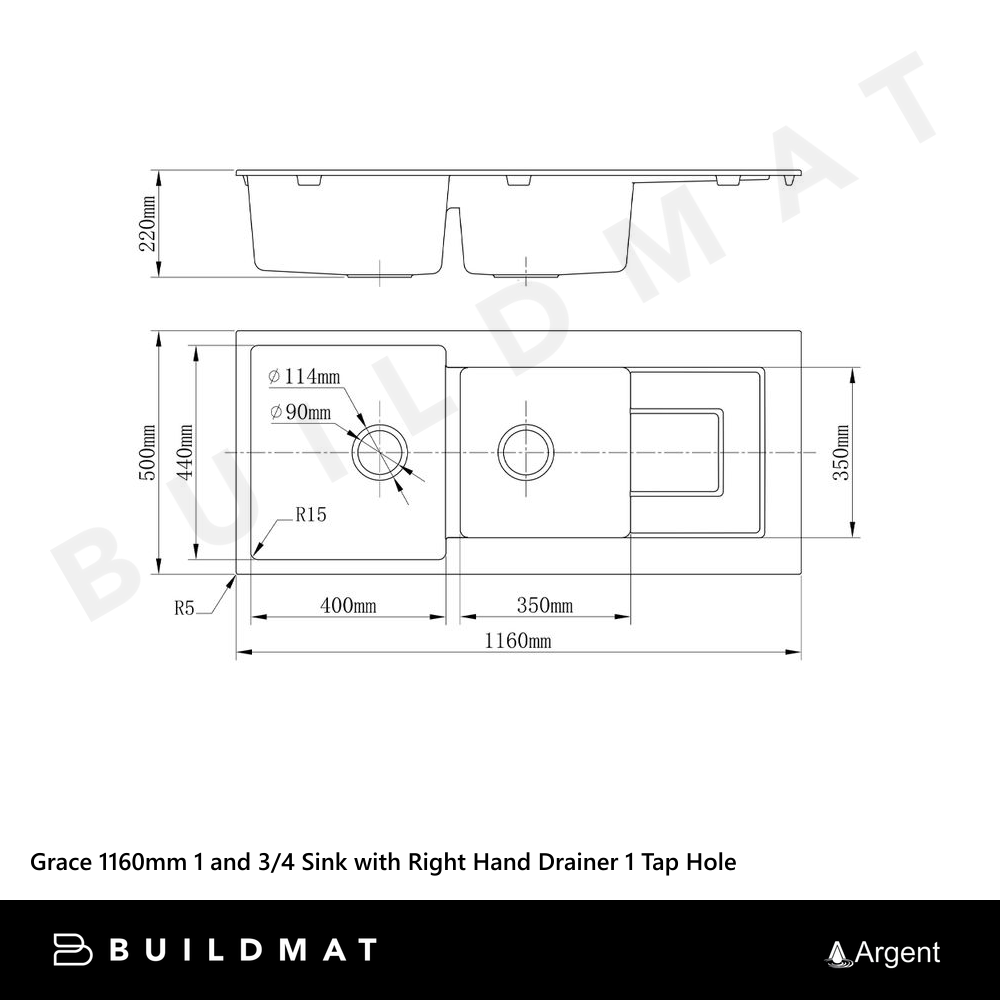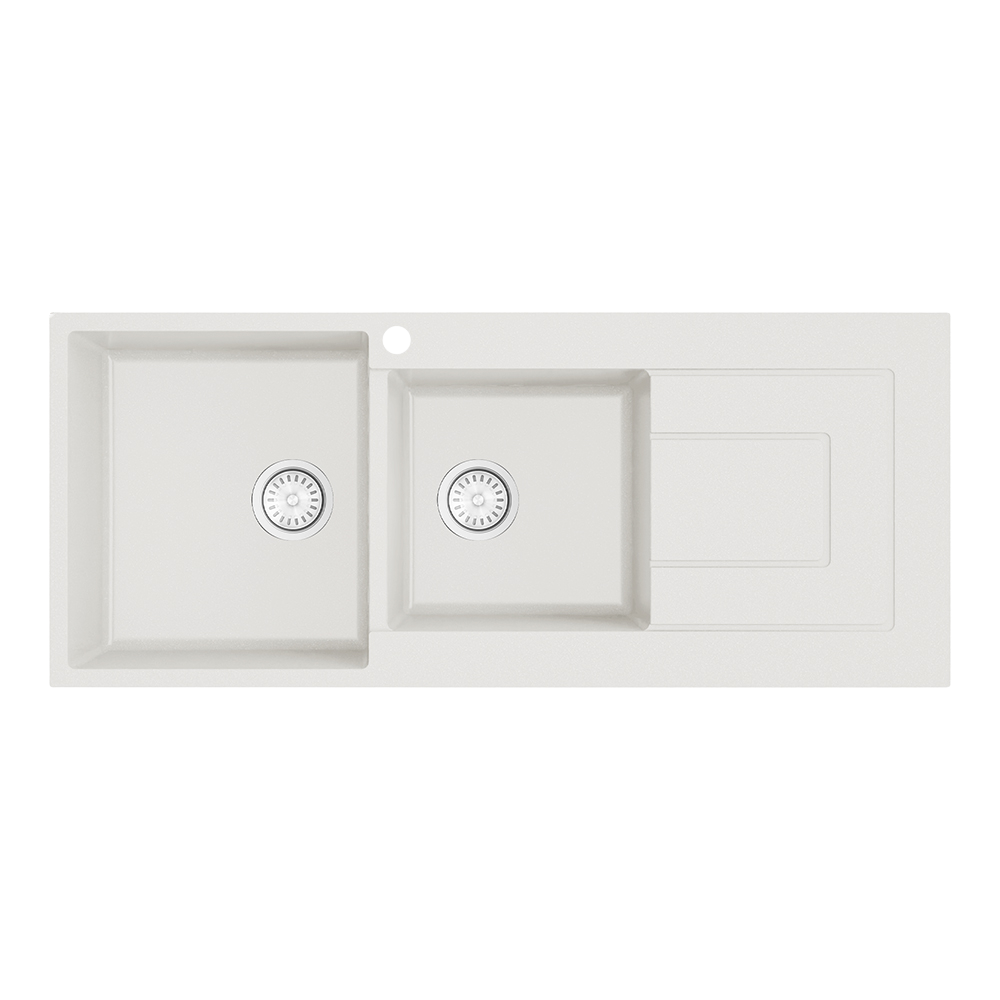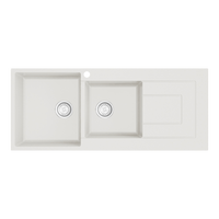 Argent Grace 1160mm 1 and 3/4 Granite Sink with Right Hand Drainboard 1 Tap Hole White