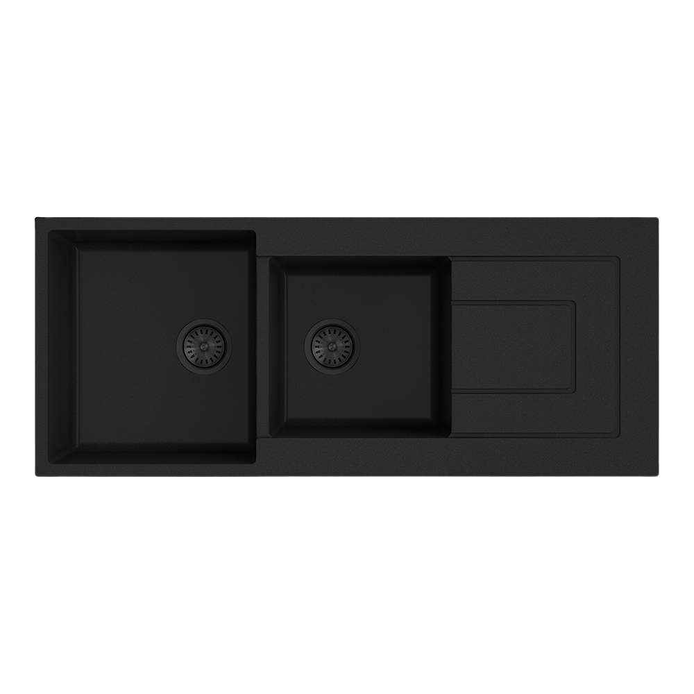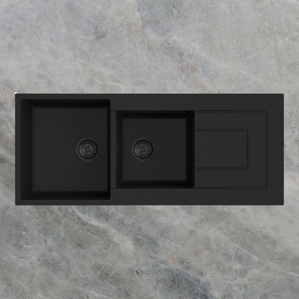 Argent Grace 1160mm 1 and 3/4 Granite Sink with Right Hand Drainboard Matte Black