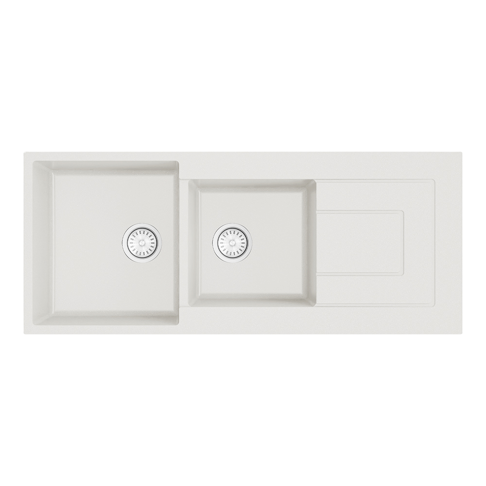 Argent Grace 1160mm 1 and 3/4 Granite Sink with Right Hand Drainboard White
