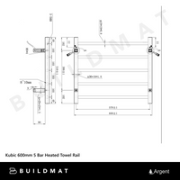 Argent Kubic 600mm 5 Bar Heated Towel Rail Matte Black