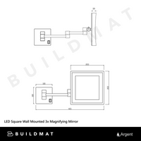 Argent LED Square Wall Mounted 3x Magnifying Mirror Chrome