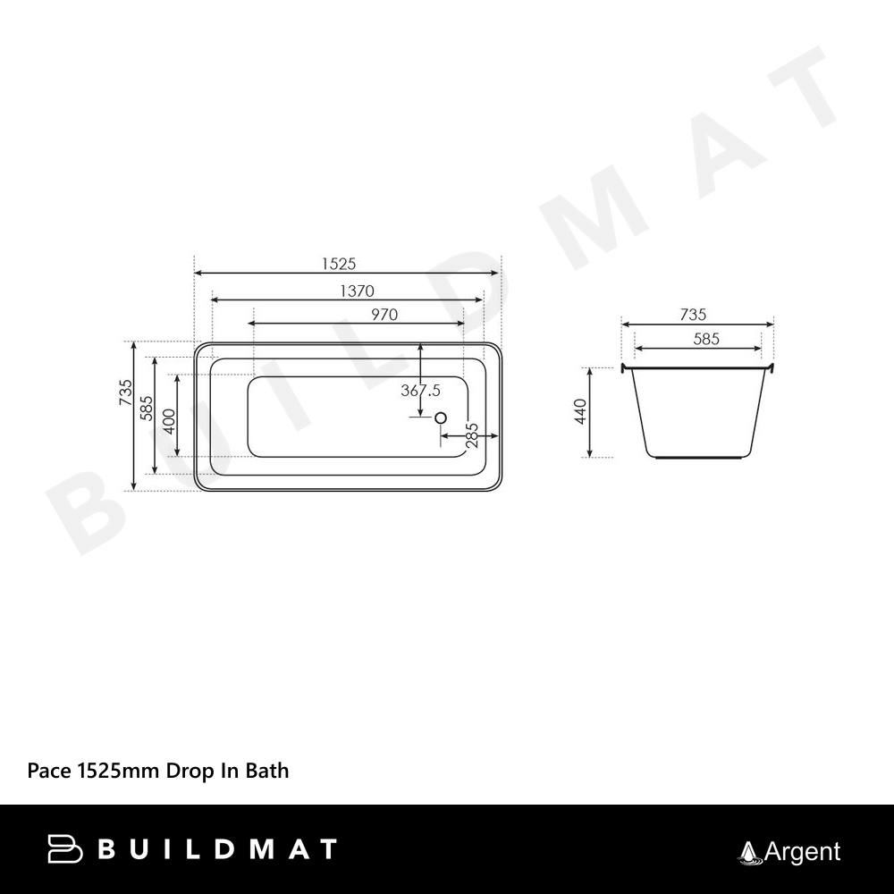 Argent Pace 1525mm Drop In Bath White