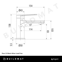 Argent Pace 2.0 Basin Mixer Chrome Lead Free