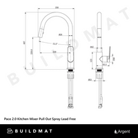 Argent Pace 2.0 Kitchen Mixer Pull Out Spray Brushed Gold Lead Free