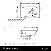 Argent Pace 460mm Rectangular Under Counter Basin with Overflow Matte Black