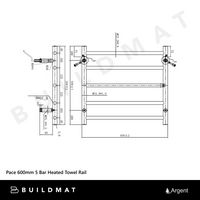 Argent Pace 600mm 5 Bar Heated Towel Rail Matte Black