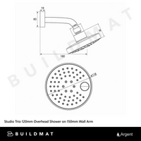 Argent Studio Trio 120mm Overhead Shower on 150mm Wall Arm Chrome