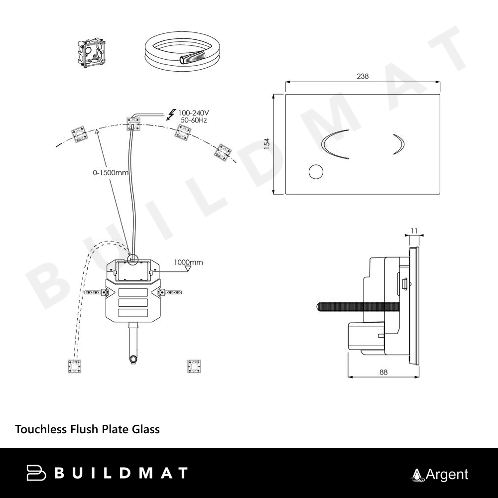 Argent Touchless Flush Plate Black Glass