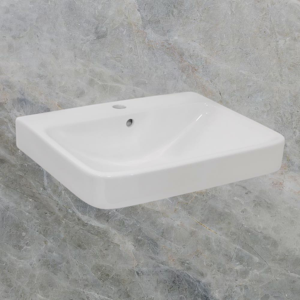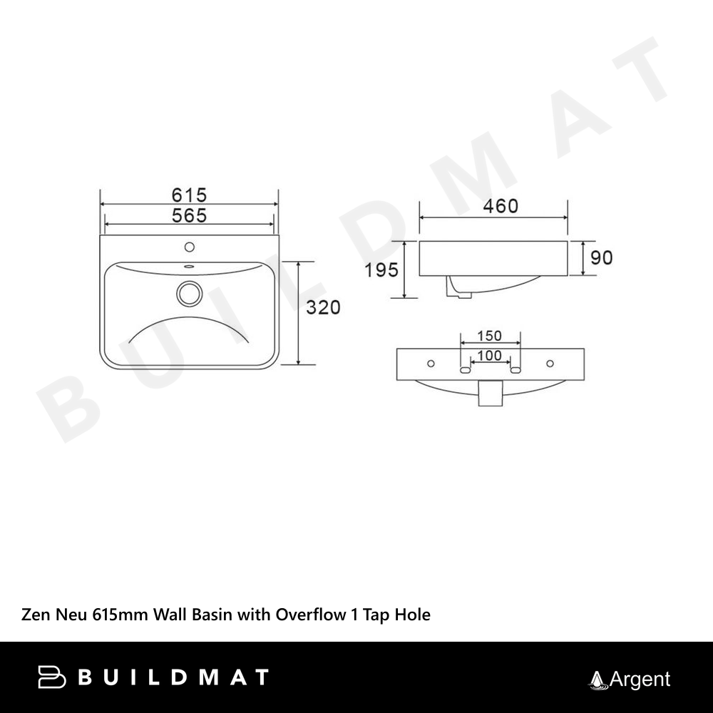 Argent Zen Neu 615mm Wall Hung Basin with Overflow 1 Tap Hole Gloss White