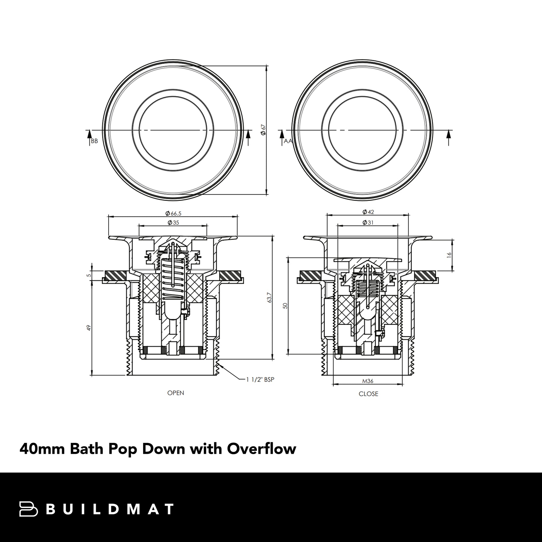 Art Australia Matte White 40mm Bath Pop Down Waste with Overflow