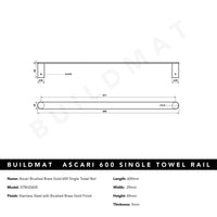 Ascari Brushed Brass Gold 600 Single Towel Rail