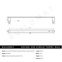 Ascari Brushed Vintage Antique Brass 600 Single Towel Rail