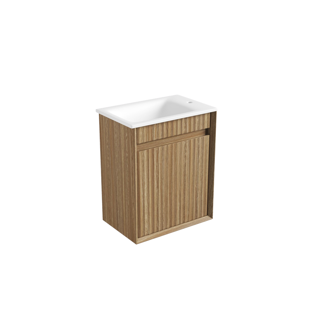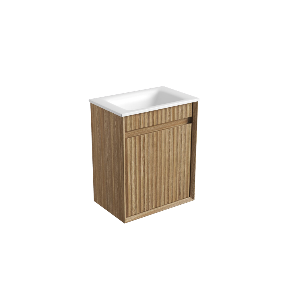 Aulic Mini Ravia Fluted Wall Hung 450mm Vanity Harvest Oak
