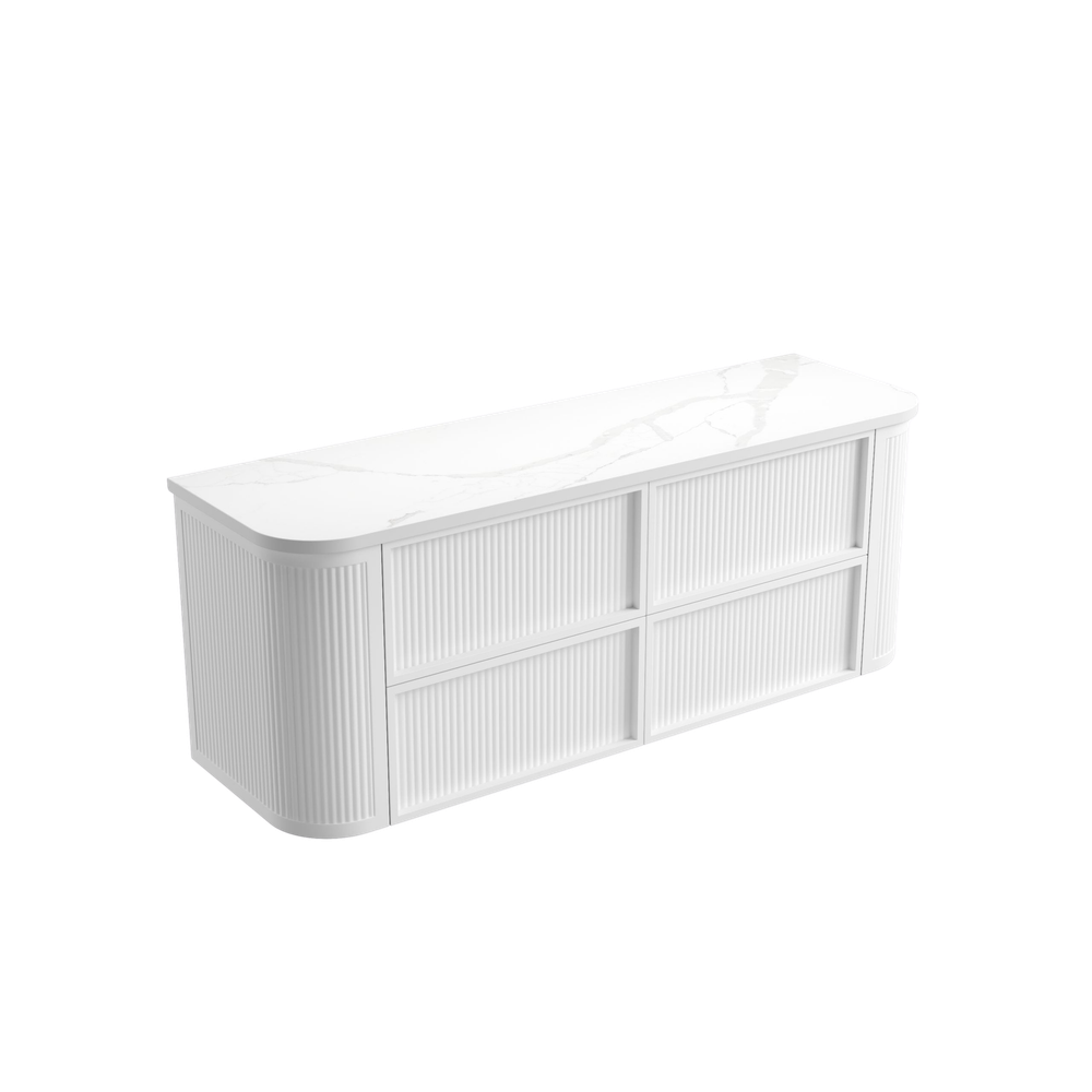 Aulic Ramee Fluted Wall Hung 1500mm Vanity Matte White