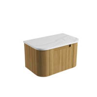 Varcelli Mono Wall Hung 750mm Harvest Oak Fluted Curved Vanity