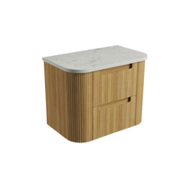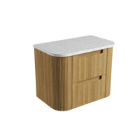 Varcelli Tier Wall Hung 750mm Harvest Oak Fluted Curved Vanity