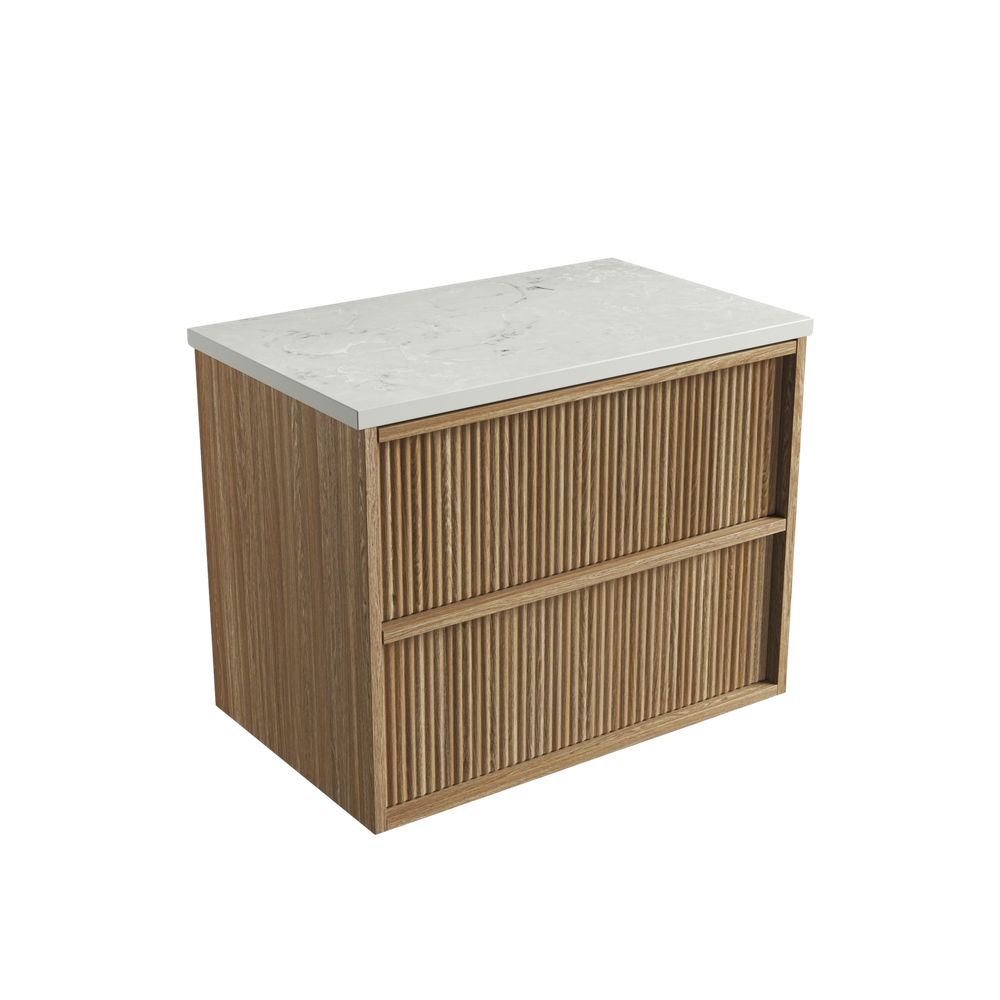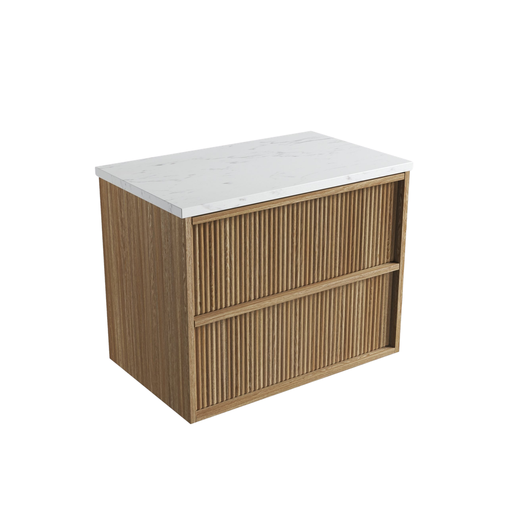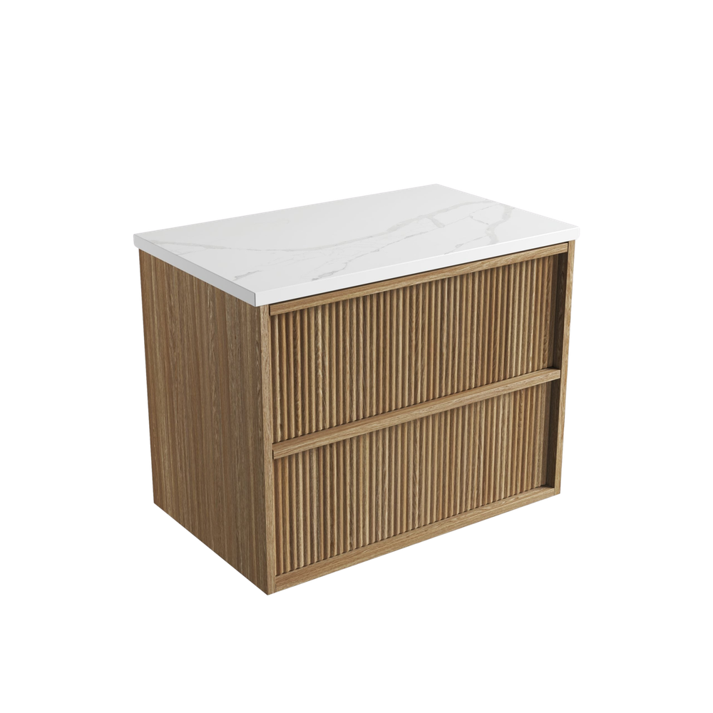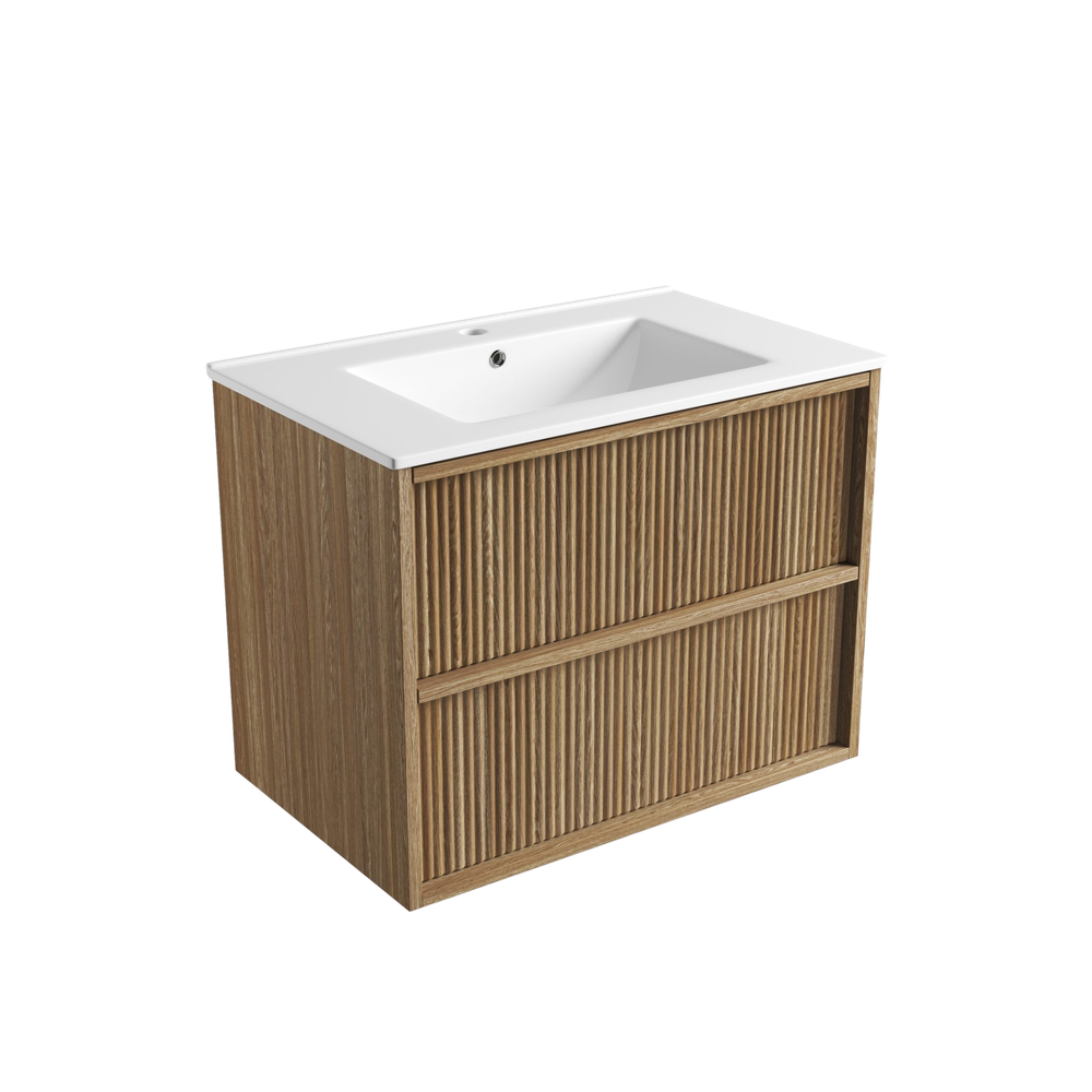 Aulic Venetta Fluted Framed Wall Hung 750mm Vanity Harvest Oak