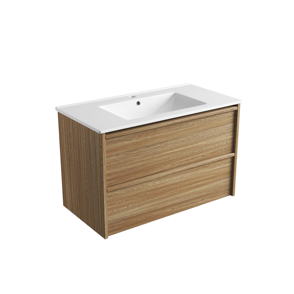 Aulic Venetta Framed Wall Hung 900mm Vanity Harvest Oak