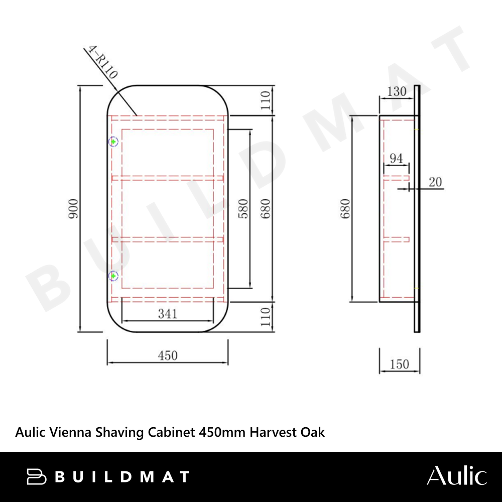 Aulic Vienna Shaving Cabinet 450mm Harvest Oak