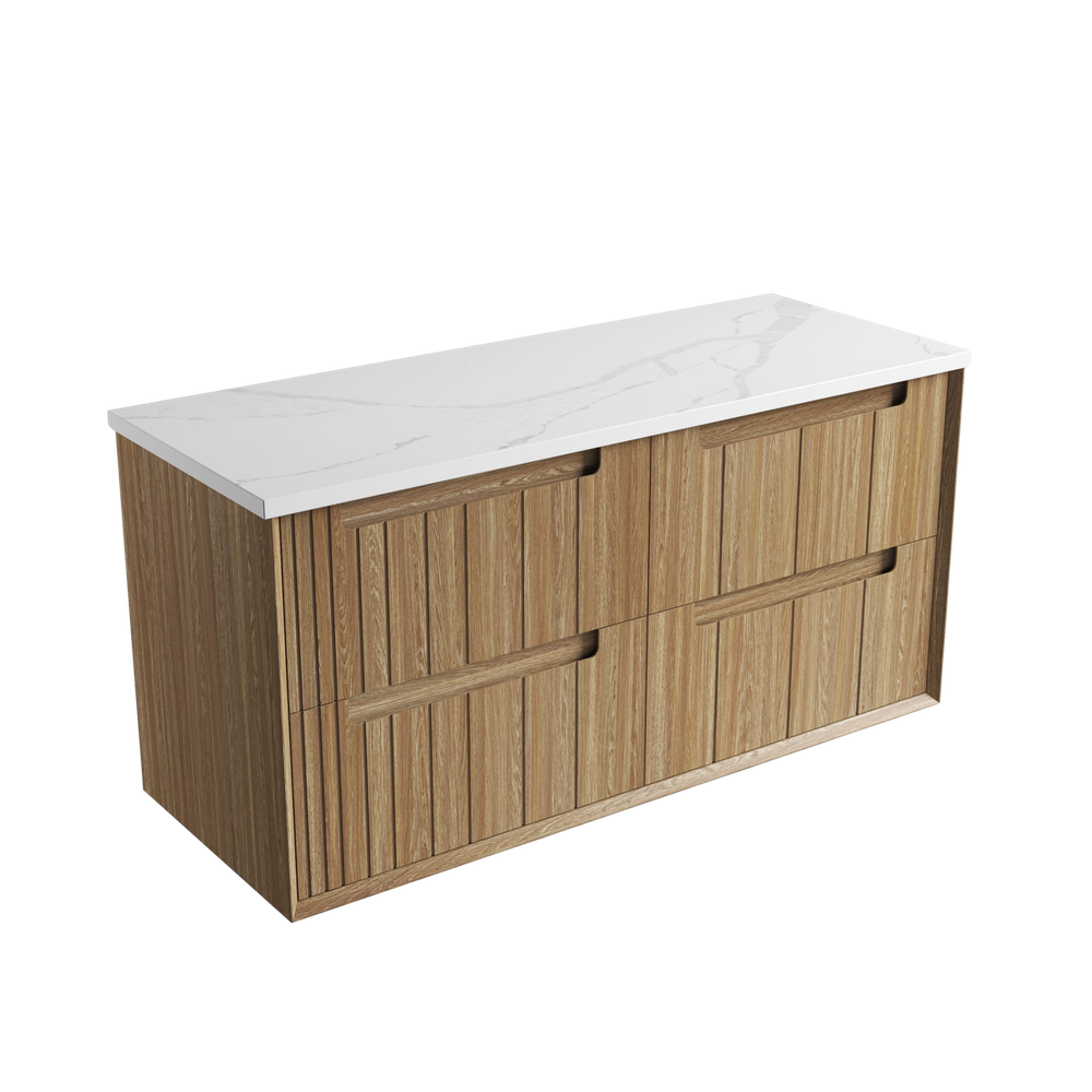 This all-drawers vanity brings refined simplicity and natural warmth to any space. Crafted from premium-grade, durable timber plywood, it features a contemporary minimal groove design that highlights the natural timber... Read more