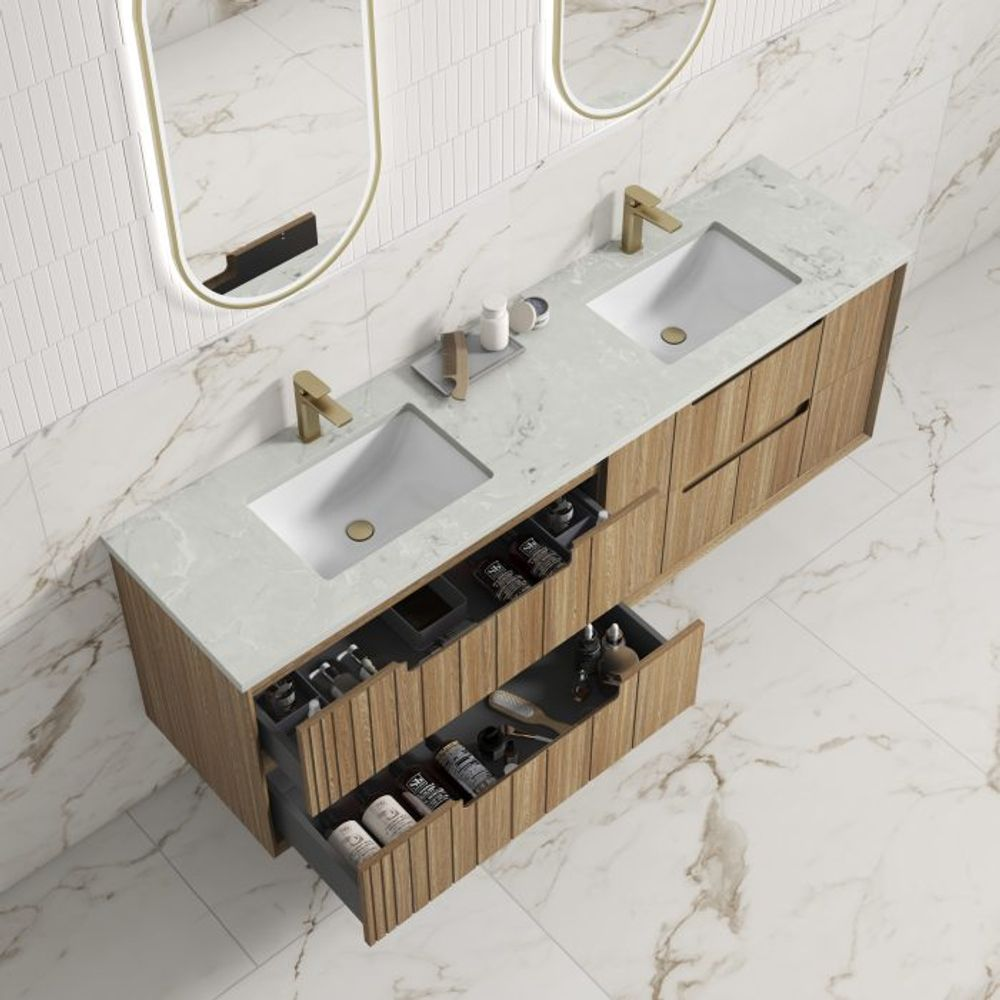This all-drawers vanity brings refined simplicity and natural warmth to any space. Crafted from premium-grade, durable timber plywood, it features a contemporary minimal groove design that highlights the natural timber... Read more