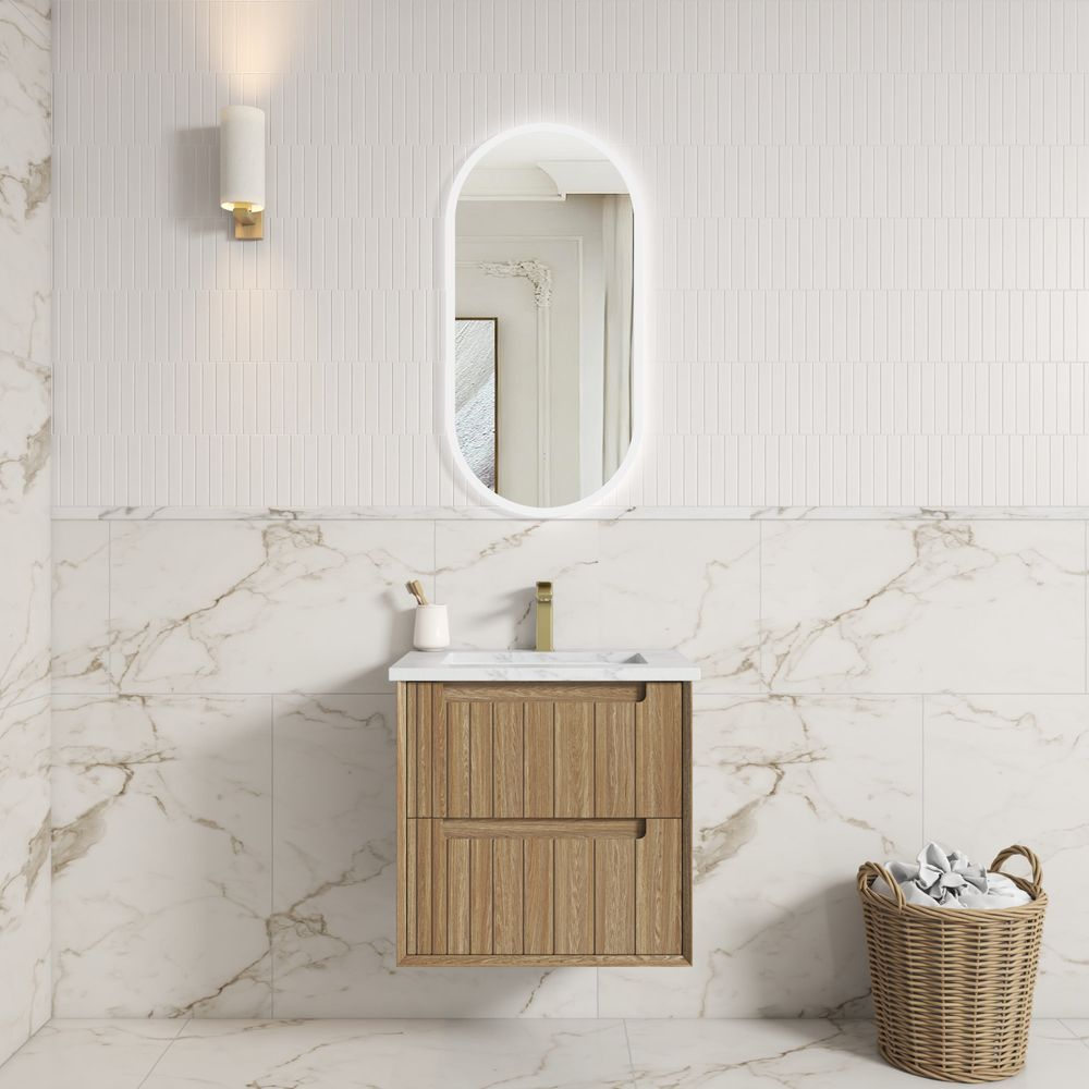 Aulic Voulari Framed Wall Hung 600mm Vanity Harvest Oak