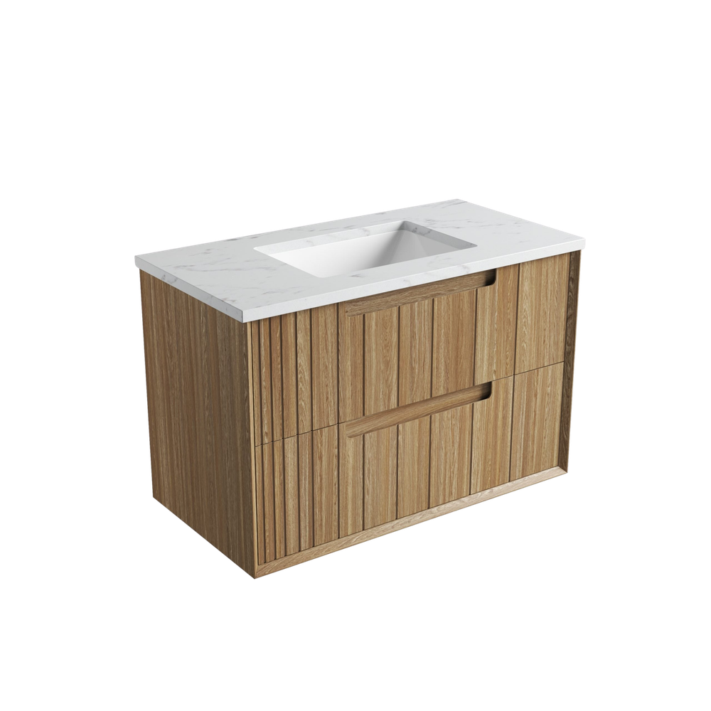 Aulic Voulari Framed Wall Hung 900mm Vanity Harvest Oak