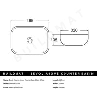Above Counter Ceramic Basin Size: 460 x 320 x 135mmTap Hole: N/AOverflow: N/AMaterial: Ceramic Basin Product Code: BMPA4632GWFinish Colour: Gloss White Read more