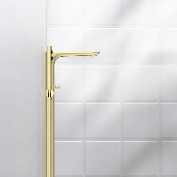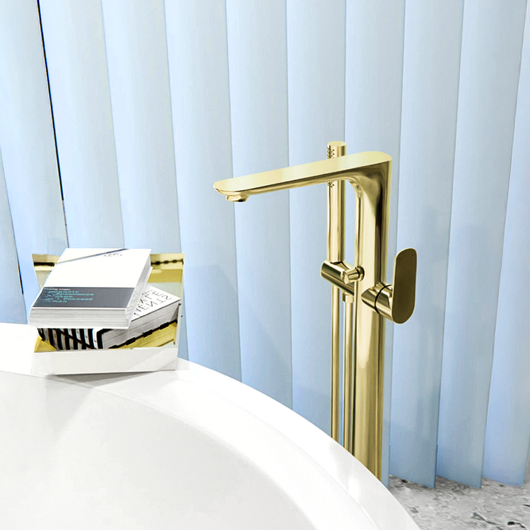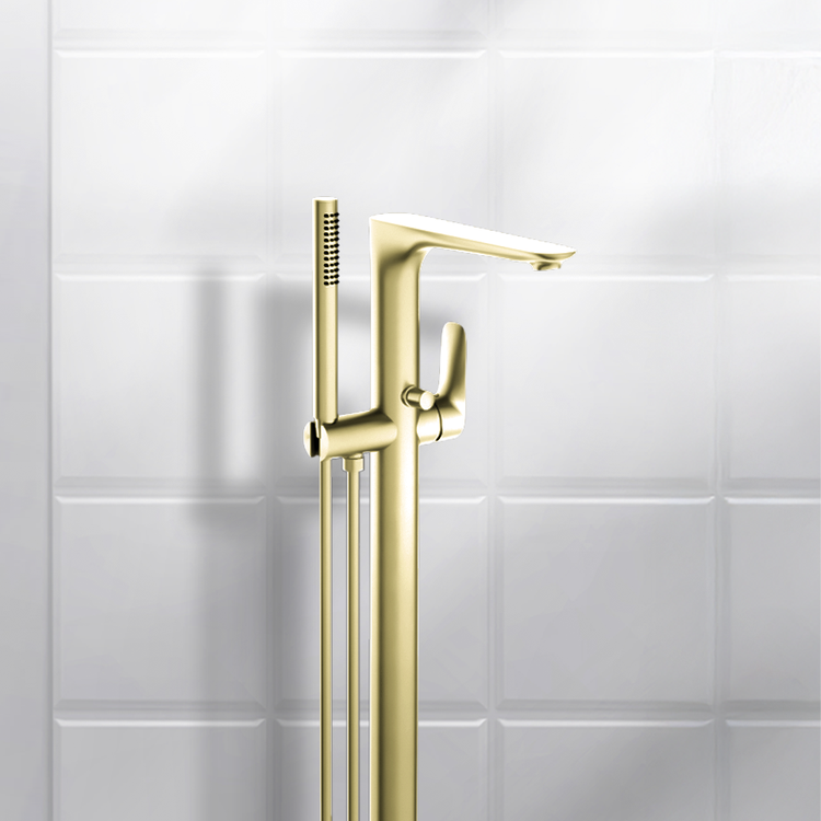 Nero Bianca Freestanding Bath Mixer with Hand Shower Brushed Gold