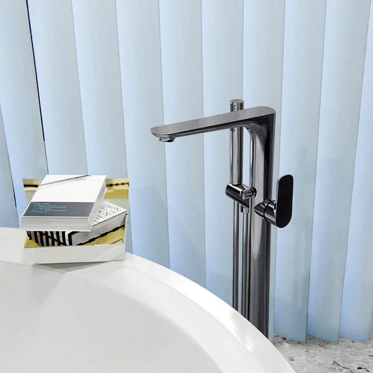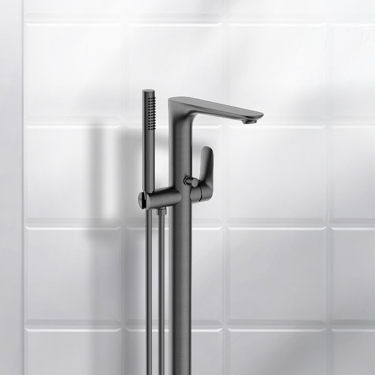 Nero Bianca Freestanding Bath Mixer with Hand Shower Gunmetal