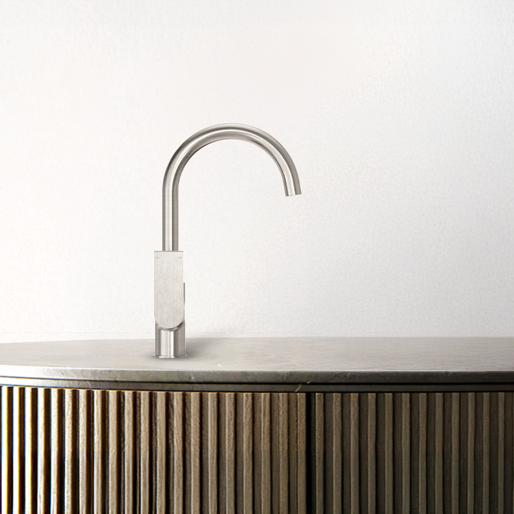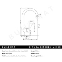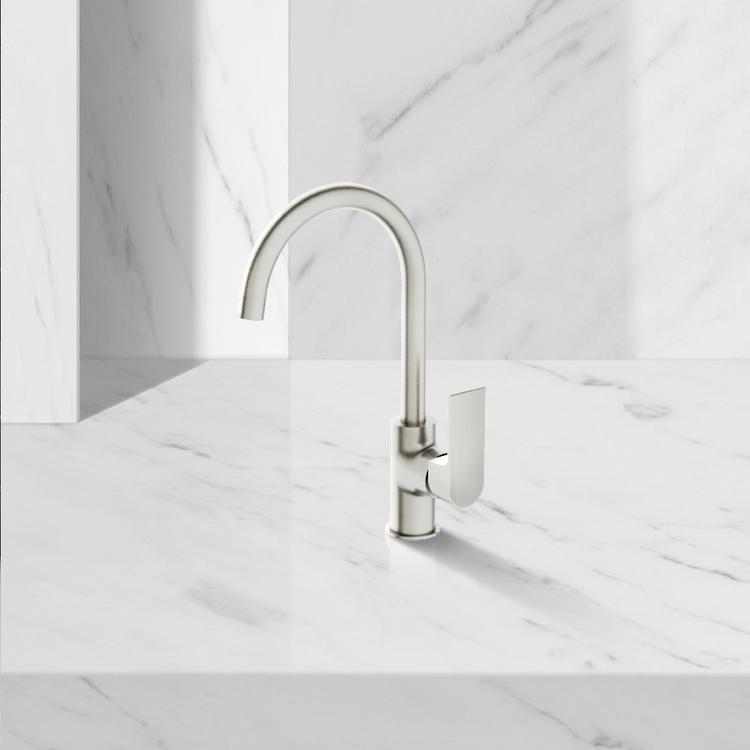 Nero Bianca Kitchen Mixer Gooseneck Spout Brushed Nickel
