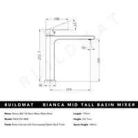 Nero Bianca Mid Tall Basin Mixer Matte Black