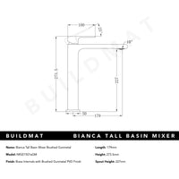 Nero Bianca Tall Basin Mixer Brushed Gunmetal