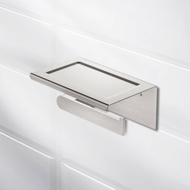Nero Bianca Toilet Roll Holder with Phone Holder Brushed Nickel