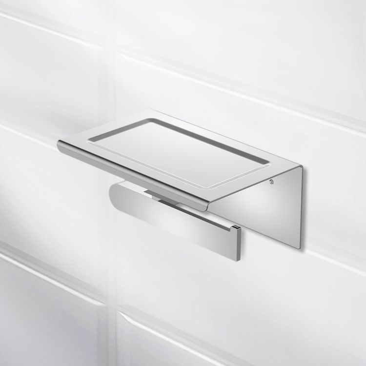 Nero Bianca Toilet Roll Holder with Phone Holder Chrome