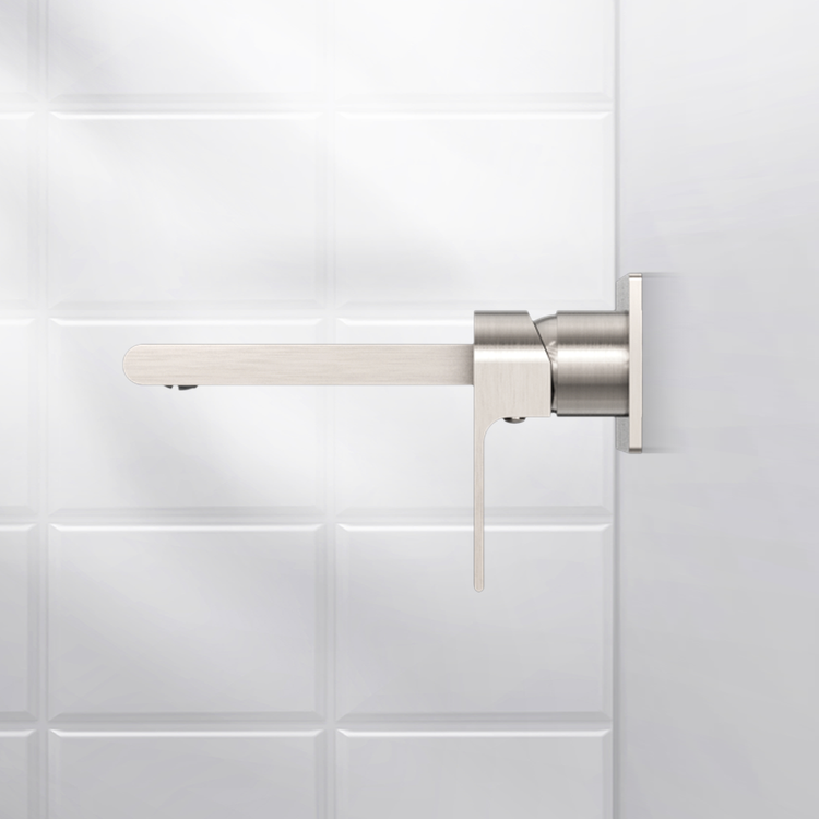 Nero Bianca Wall Basin/Bath Mixer 187mm Brushed Nickel